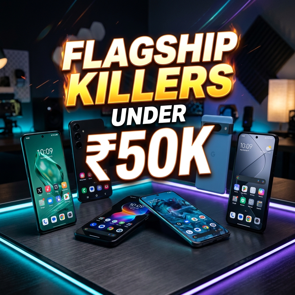 ₹50,000 ke budget mein India ke best flagship-killer smartphones 2026. OnePlus 15R, iQOO 15R, Nothing Phone, Realme GT 7 Pro — complete expert guide.