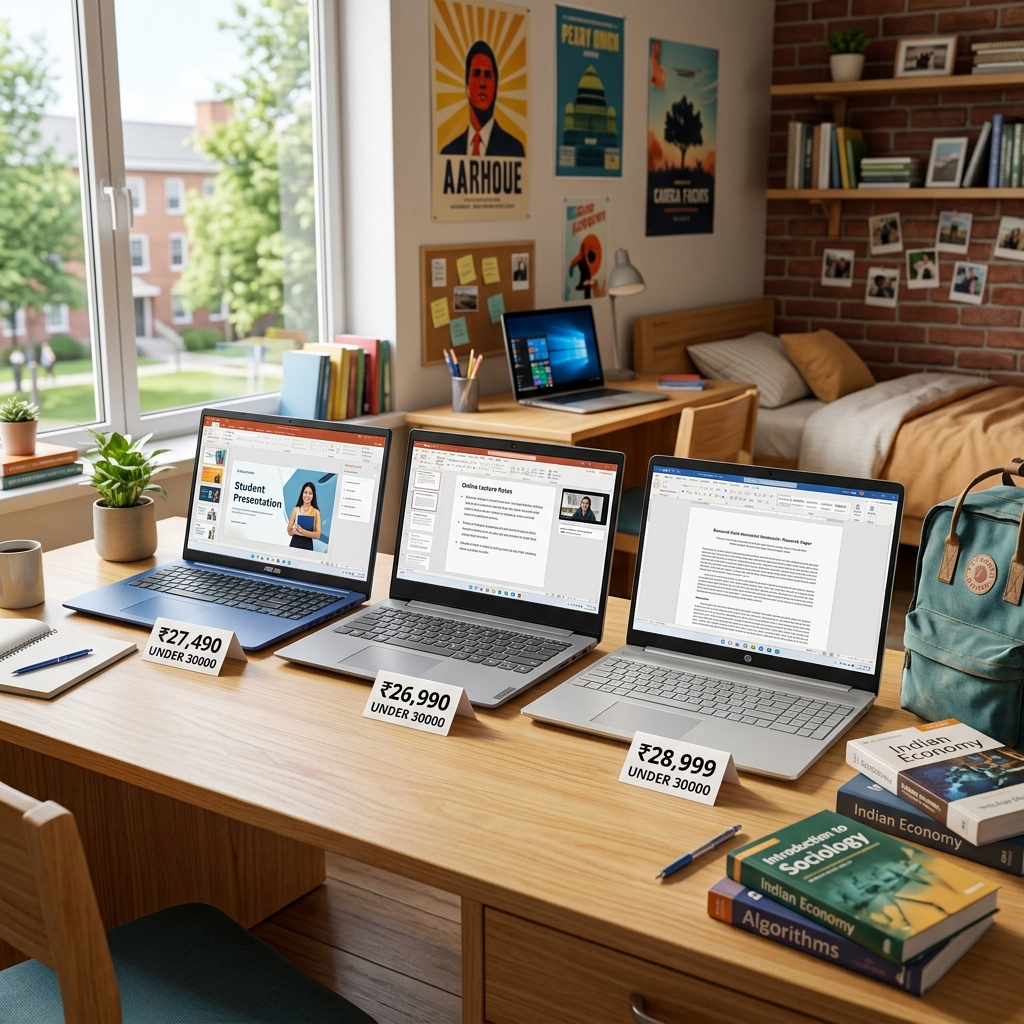 ₹30,000 से कम में best laptop कौनसा है? Students के लिए top 5 budget laptops जो college, coding, और online classes के लिए perfect हैं। Full comparison inside!