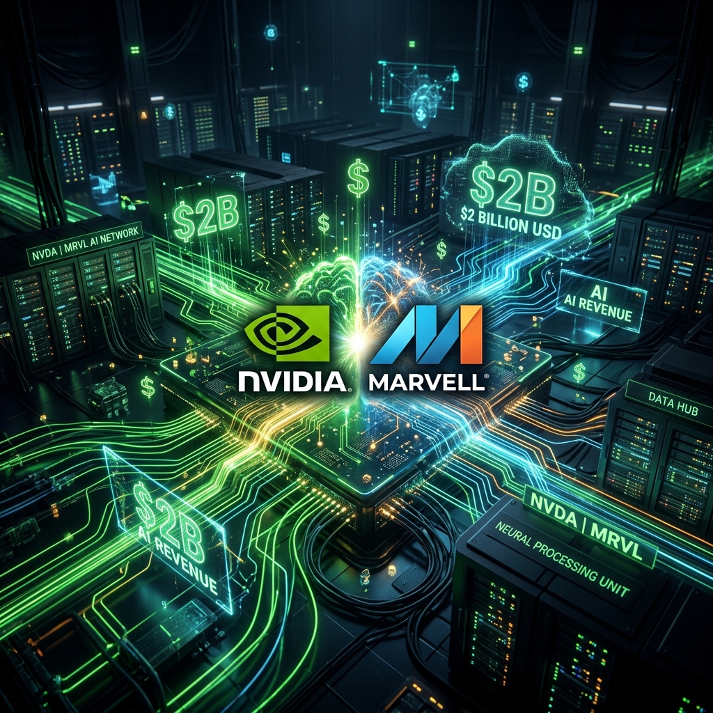 Nvidia और Marvell Technology के बीच $2 बिलियन डॉलर की बड़ी AI Alliance की घोषणा। घोषणा के बाद Marvell का स्टॉक 11% उछल गया।